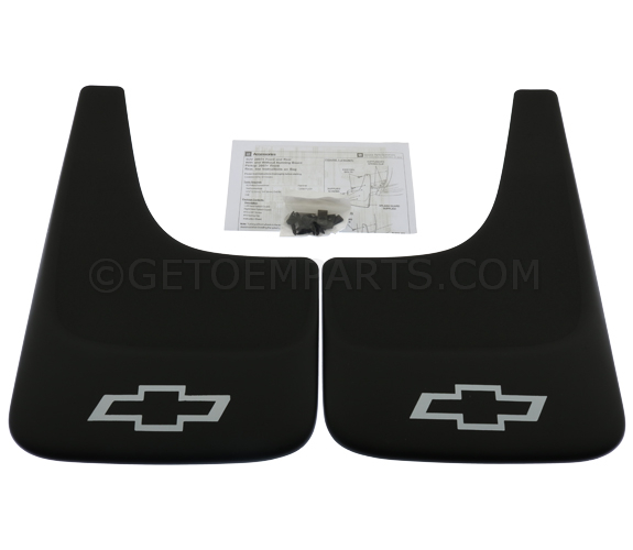 Splash Guards look great while helping protect your vehicle from mud, dirt, snow, salt and gravel. They are designed specifically for your vehicle to insure a perfect fit. Help protect your vehicle from tire splash and mud with these Rear Flat Splash Guards. They fit directly behind the rear wheels. There are multiple versions of this accessory. Front or Rear Set- Black with Bowtie Logo (without RPO Code HP2). GM Accessories splash guards look great while helping protect your GM from mud- dirt- snow- salt and gravel. Made of fortified- long-lasting materials- the guards will not chip- crack- or tear and will withstand extreme temperatures. Help protect your Suburban from tire splash and mud with these black Flat Splash Guards that fit directly behind your rear wheels. Help protect your vehicle from mud, gravel and road splash with Chevrolet Accessories Splash Guards.